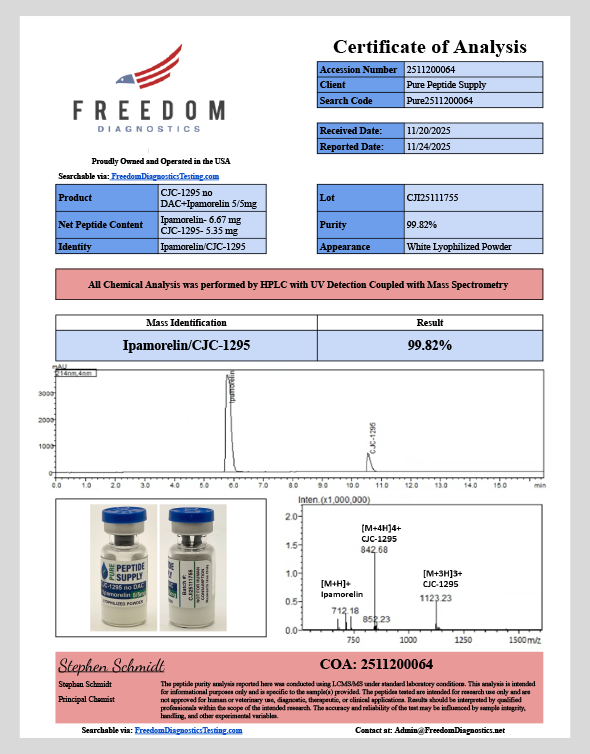 CJC-1295 No DAC + Ipamorelin in a 5mg/5mg blend.